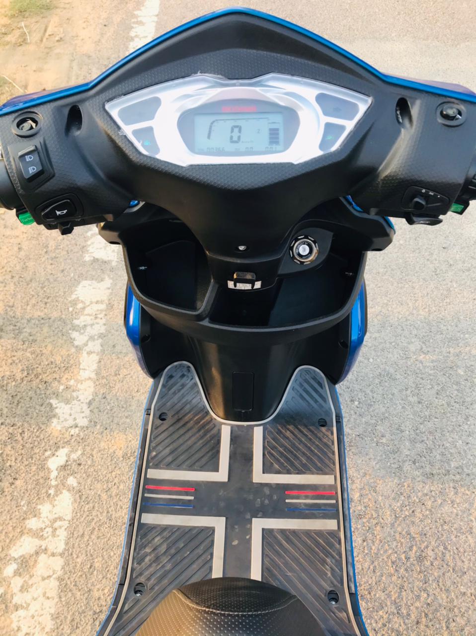 Okinawa PraisePro के फुट पैग पर राइडर को काफी स्पेस मिलता है। इसके साथ ही इसके हैंडल बार के नीचे मिलने वाला स्पेस छोटे मोटे सामान जैसे मोबाइल फोन, वॉलेट आदि को रखने के काम आता है। यह कहना गलत नहीं होगा कि राईडर के स्कूटर को चलाते समय घुटने मुड़े हुए होते हैं, फिर चाहे आपकी हाईट कम हो या ज्यादा। इसके अलावा सीट काफी लंबी और आरामदायक है, हैंडलबार को एक साधारण तरीके से डिजाइन किया गया है। जो काफी हद तक फुटबोर्ड पर घुटने मुड़ने की समस्या को खत्म करता है।
